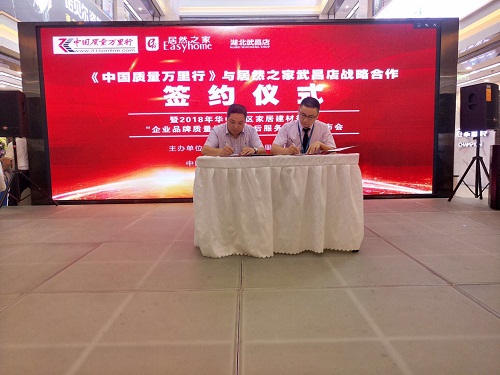 6.24日下午14:30,居然之家武昌店與《中國質(zhì)量萬里行》舉行戰(zhàn)略合作簽約儀式。居然之家武昌店總經(jīng)理蔡得法、《中國質(zhì)量萬里行》雜志社副社長劉大平先生、首席記者劉回春先生、《中國質(zhì)量萬里行》湖北中心張旭東主任等一同出席了簽約儀式。